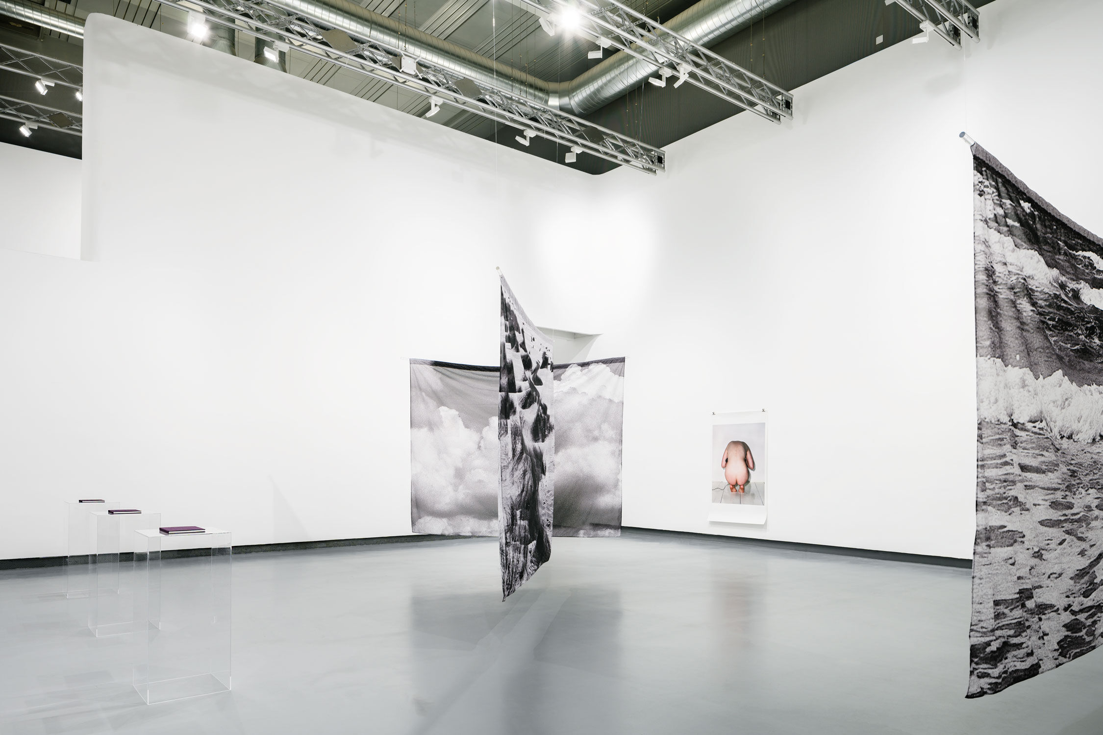 Jay Ritchie's installation somewhere with me (2017-2022) consists of three parts - a book with texts by Ritchie, slightly transparent textiles with black and white landscape images and photographic self-portraits and body images. The focus is on dealing with one's own experiences of sexualised violence and the visible and invisible traces they leave on and in the body, which can shape the everyday life, thoughts and actions of those affected even years later. Like the photographs, the texts in the book are not documentary in nature, but deal with dreams, fantasies, memories, but also the harsh reality, including the consequences and inscriptions of the experiences. The photographic works and texts are direct and can sometimes be irritating or disturbing, but they are also poetic thoughts. They make clear the complexity of dealing with sexualised assaults. On the one hand, the body is the carrier of the trauma, but at the same time it is also the medium for coming to terms with, healing and processing. It is vulnerable and resilient at the same time.